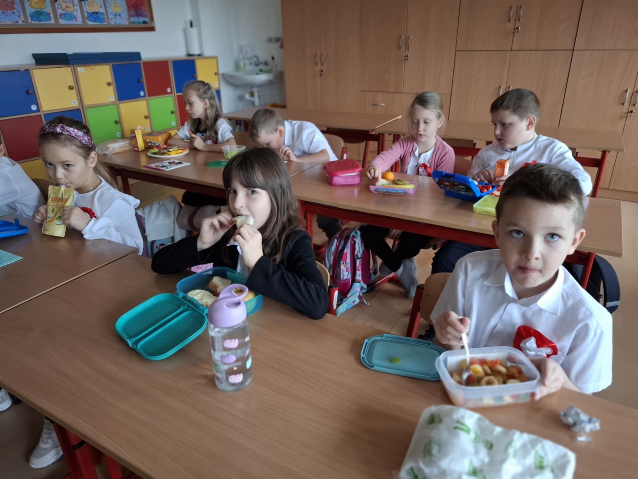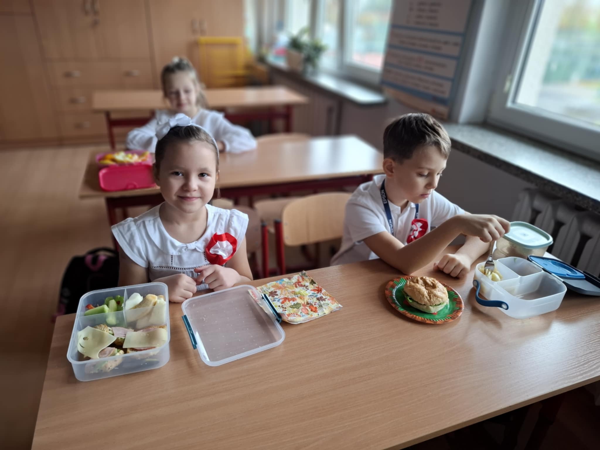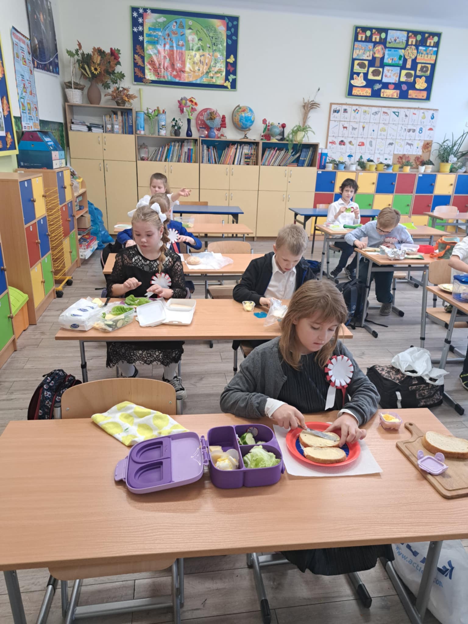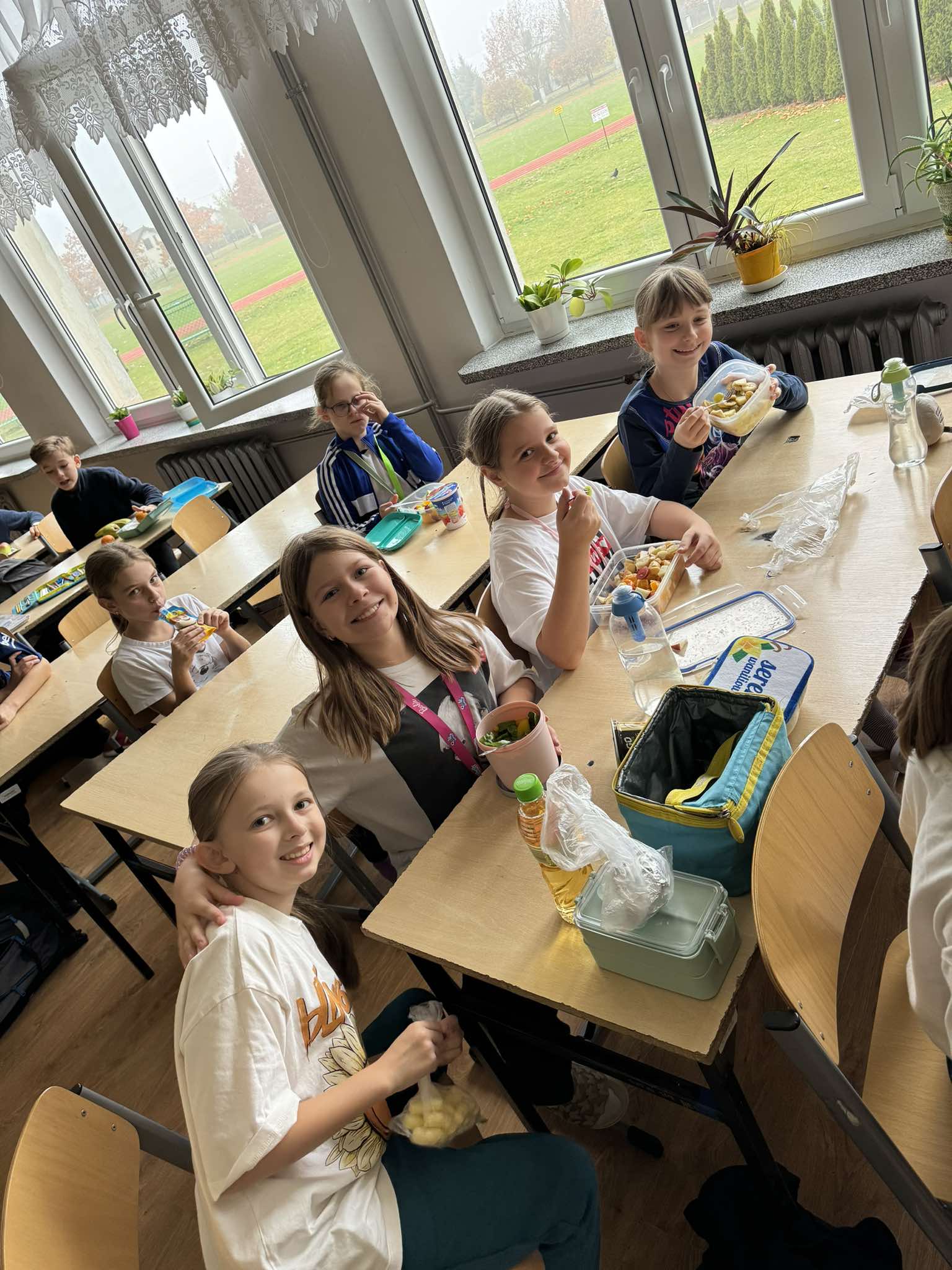 W piątek 8 listopada uczniowie i nauczyciele wspólnie spożywali śniadanie. Były to kolorowe kanapki z pełnoziarnistego pieczywa, warzywa, owoce, sałatki, owsianki, soki ze świeżych owoców i warzyw.