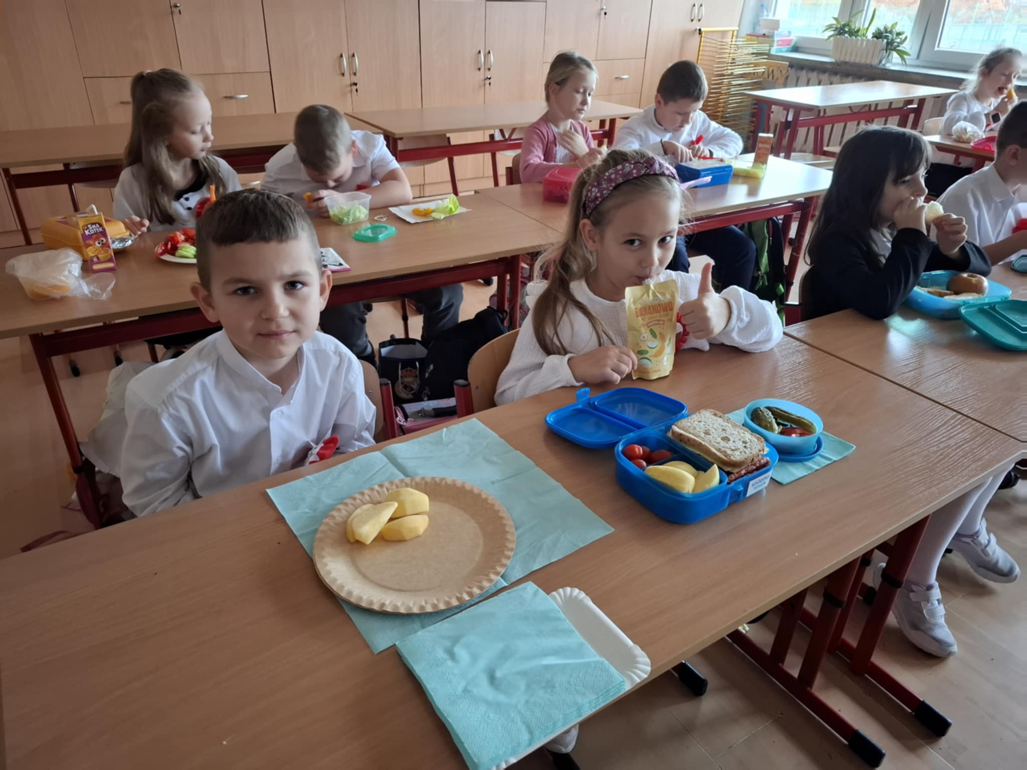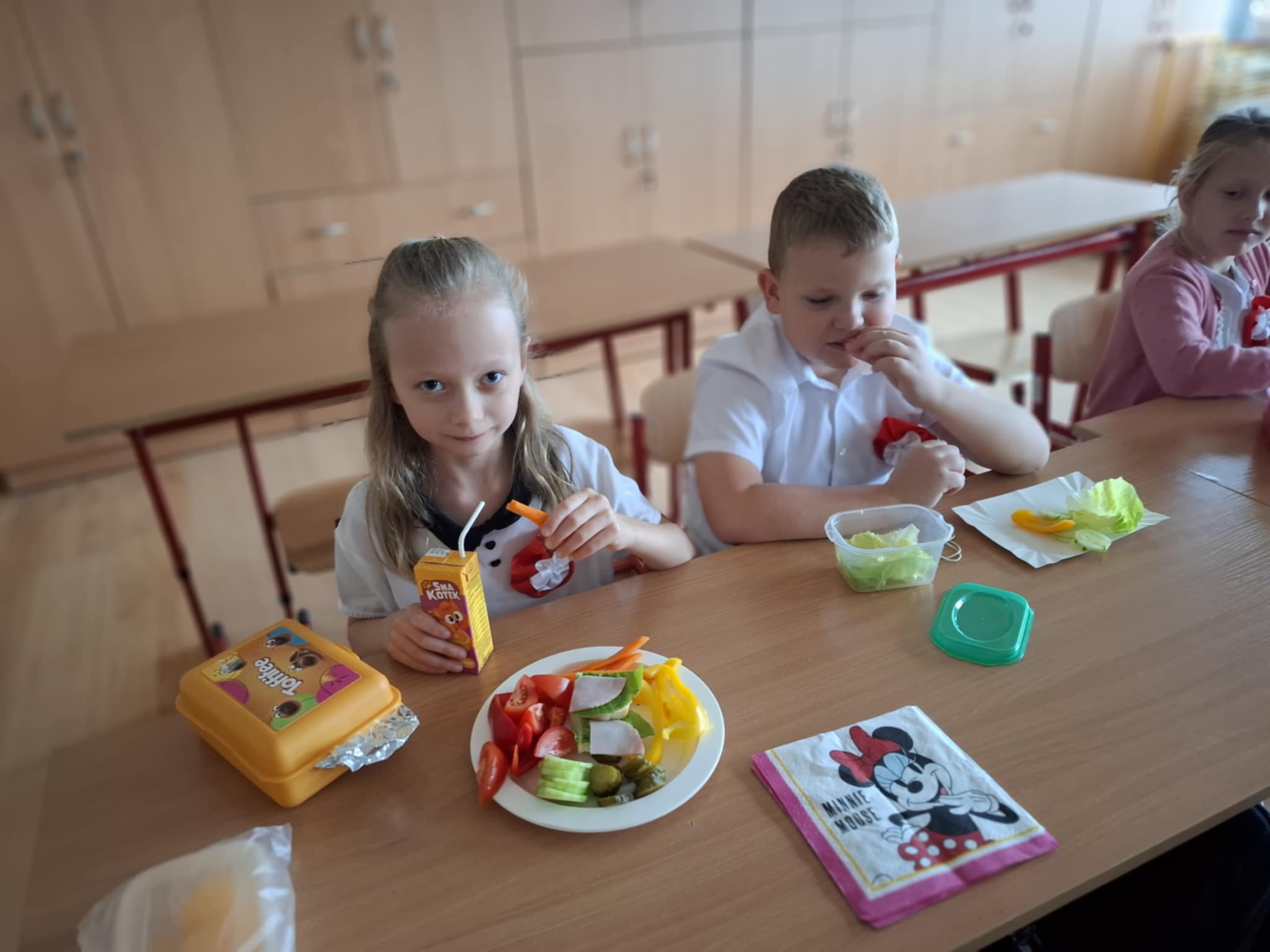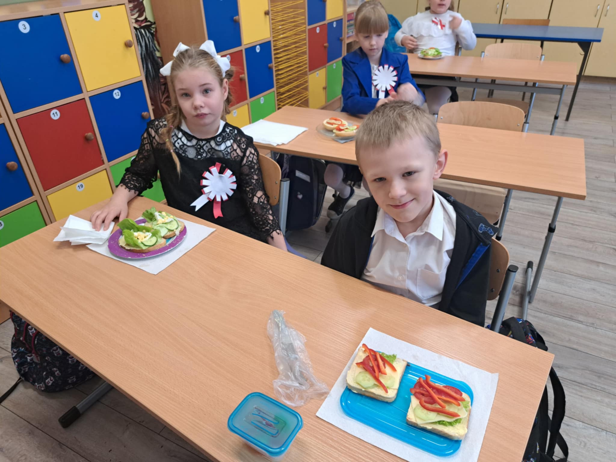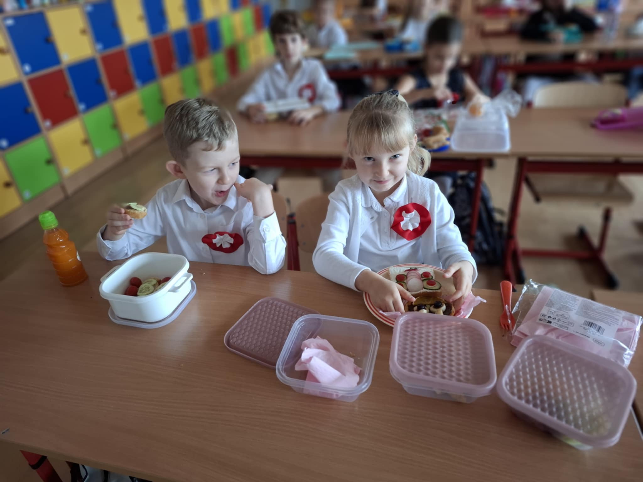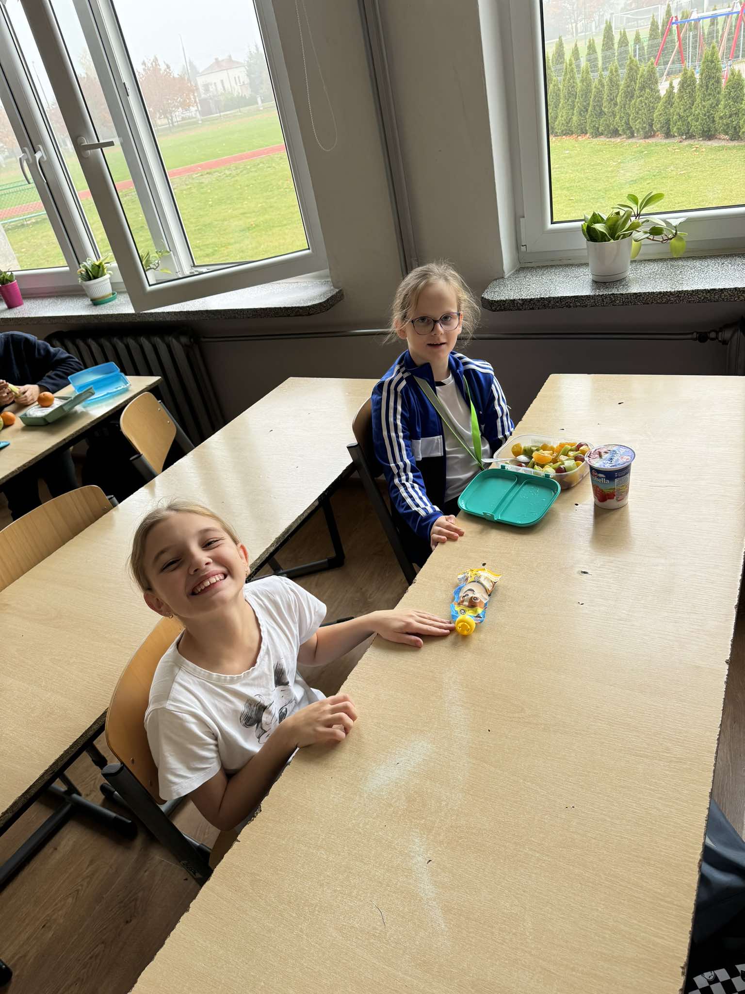 W piątek 8 listopada uczniowie i nauczyciele wspólnie spożywali śniadanie. Były to kolorowe kanapki z pełnoziarnistego pieczywa, warzywa, owoce, sałatki, owsianki, soki ze świeżych owoców i warzyw.