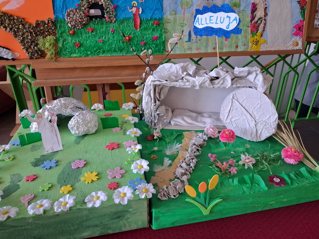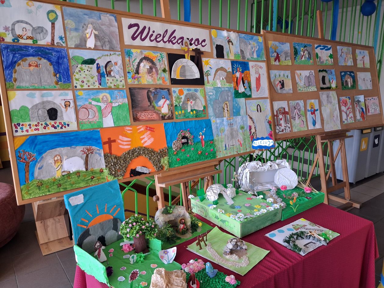 Celem konkursu było zgłębienie i manifestacja wiary w Zmartwychwstanie Pańskie. Jak też podkreślenie związku Świąt Zmartwychwstania z koronacją króla Polski - Bolesława Chrobrego, który 1000 lat temu (18.04.1025r.) wybrał tę uroczystość na swą koronację, pokazując integralność świąt kościelnych z państwowymi. Na konkurs wpłynęło 40 prac plastycznych i 7 makiet. Panie katechetki przygotowały na korytarzu szkolnym – piętro D wystawę konkursowych wielkanocnych prac uczniów. Wystawę można było obejrzeć w dniach 14.04. – 30.04.2025 r.