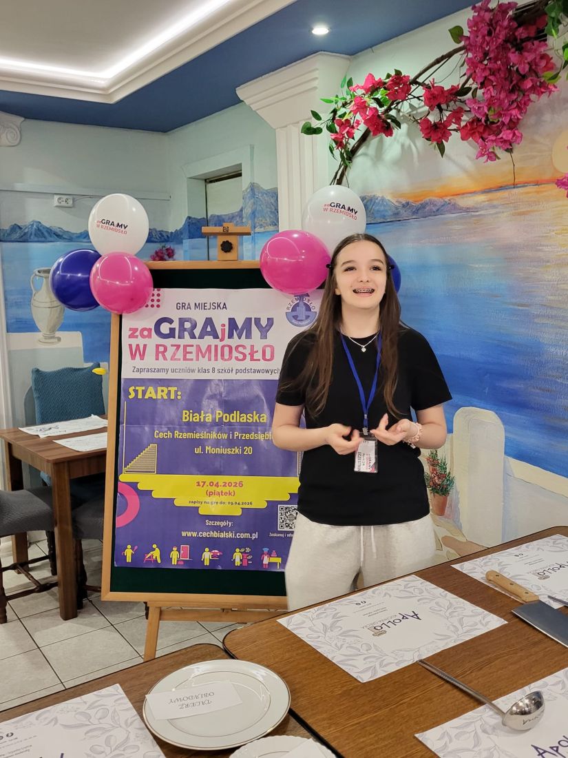 17 kwietnia 2026 r. uczniowie klasy VIII ze Szkoły Podstawowej nr 9 im. Świętej Jadwigi Królowej w Białej Podlaskiej wzięli udział w miejskiej grze ulicznej „ZaGrajmy w Rzemiosło”. Zadania rozmieszczone w różnych częściach miasta nawiązywały do zawodów takich jak fryzjer, cukiernik, sprzedawca, elektryk, mechanik, piekarz oraz kelner.