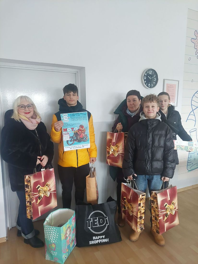 Społeczność szkolna z SP9 włączyła się do akcji charytatywnej. Dzisiaj przekazaliśmy zebrane dary Moto Mikołajom.