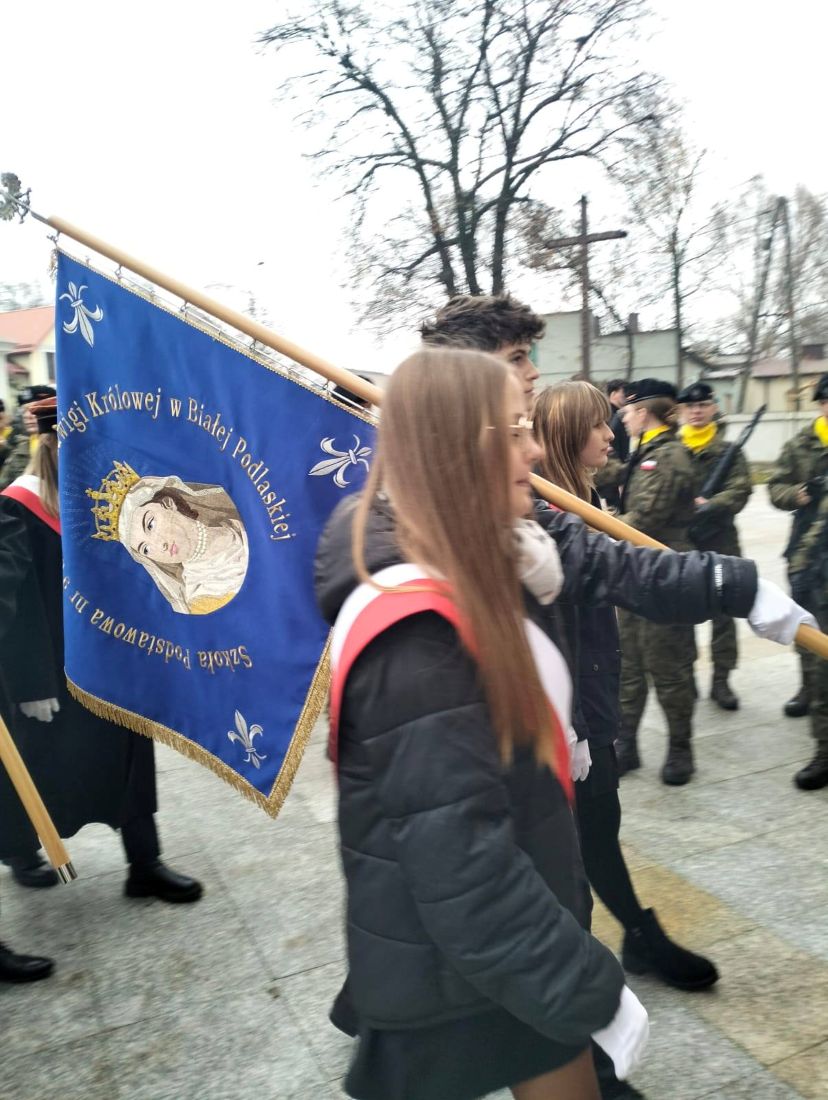 W dniu dzisiejszym uczniowie naszej szkoły uczestniczyli w obchodach Narodowego Święta Niepodległości. Uroczystość rozpoczęła się Mszą Świętą w Intencji Ojczyzny w Kościele Narodzenia NMP. Następnie nasza delegacja uczniów wraz z pocztem sztandarowym udała się na uroczystości główne na Placu Wolności.