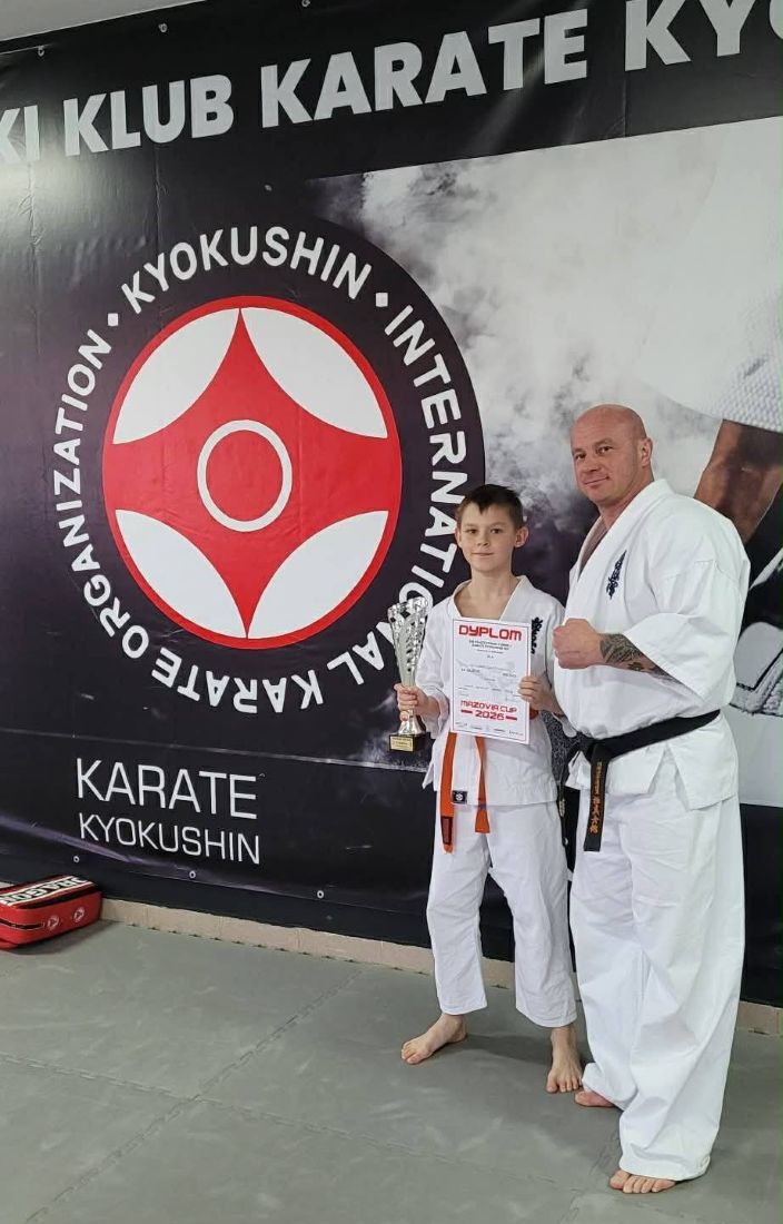 21.03.2026 w Piasecznie na Turnieju Karate Kyokushin IKO – Mazovia Cup 2026 nasz uczeń Wiktor Andrusiuk zajął 1️⃣. miejsce w kumite w kategorii chłopcy 10-11 lat do 50 kg. oraz 3️⃣. miejsce w kategorii kata chłopcy 10-11 lat. Uczeń Szymon Sikorski zajął 2️⃣. miejsce w kumite w kategorii chłopcy 10-11 lat do 40 kg. Szymon należy do Bialskiego Klubu Karate Kiokushin Wataha.