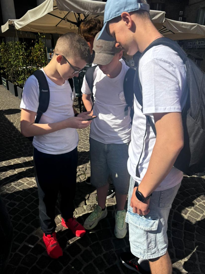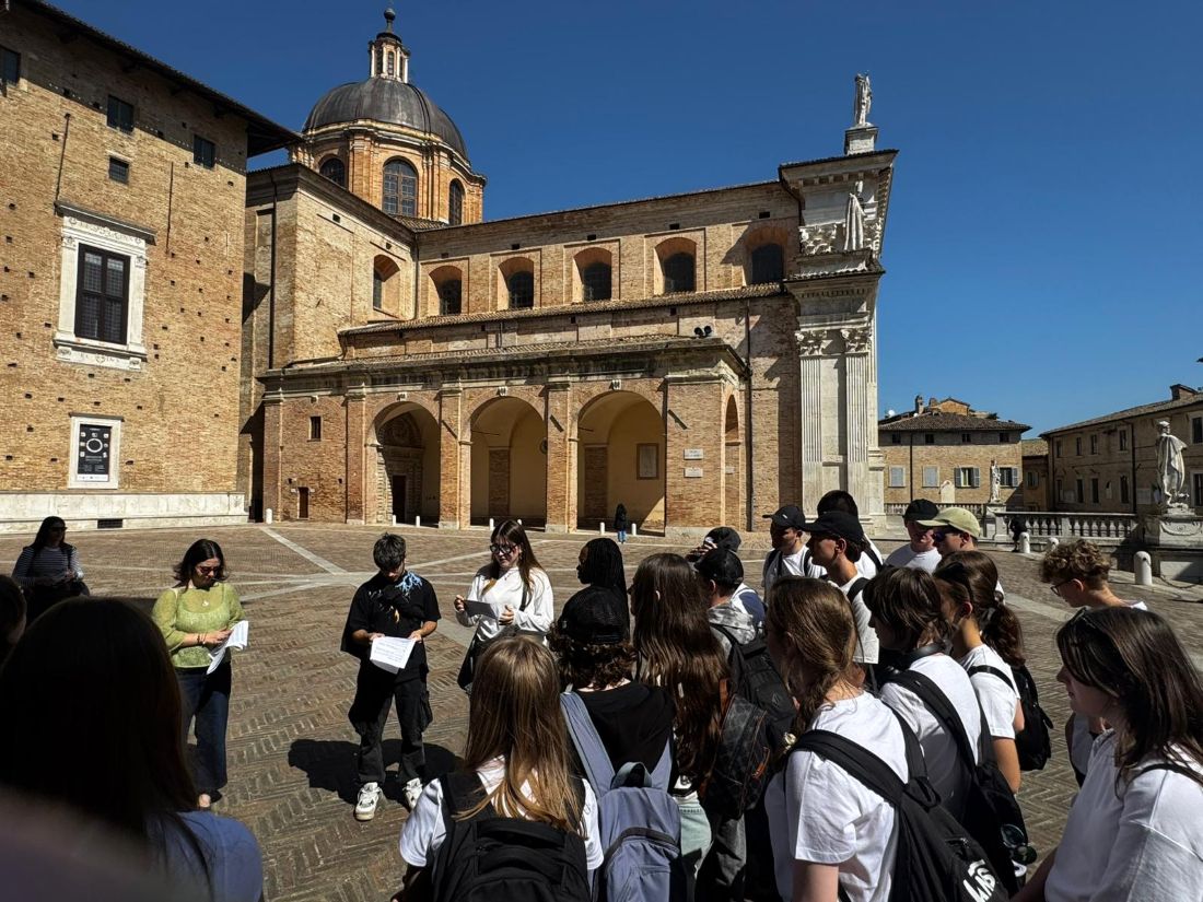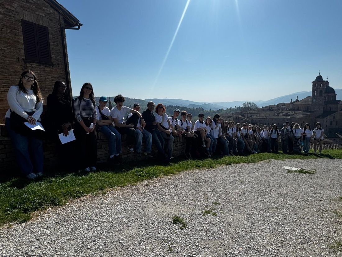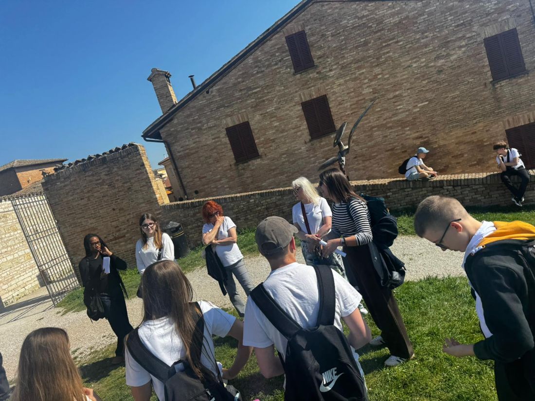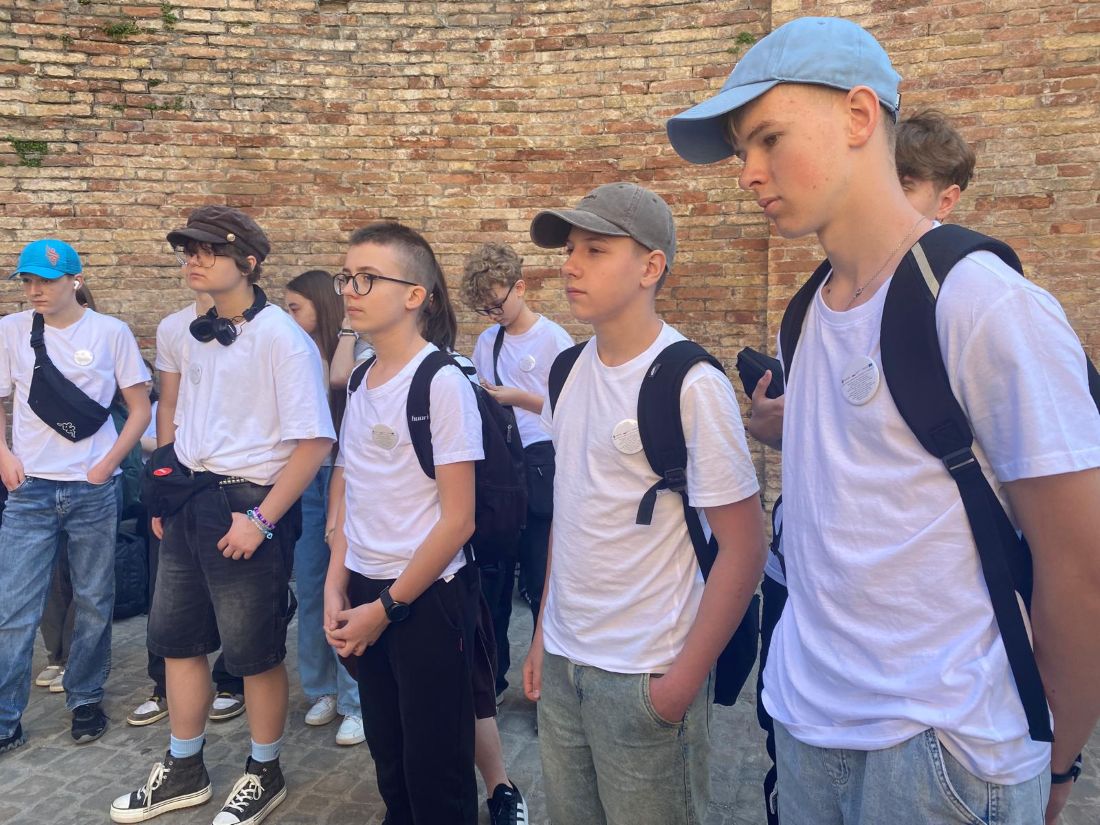 W piątek 17 kwietnia odwiedziliśmy urocze miasteczko Urbino we włoskim regionie Marche. Tam spotkaliśmy się z uczniami 👨🏼‍🎓🧑🏼‍🎓 Liceum o profilu turystycznym oraz ich nauczycielka 👩‍🏫 włoska młodzież opowiedziała nam o swojej szkole 🏫📓📝 mieliśmy też szansę zadać kilka pytań w języku angielskim aby dowiedzieć się jakie egzaminy zdają nasi włoscy przyjaciele, jakich uczą się przedmiotów i jak wygląda ich typowy dzień w szkole👨‍🏫🏫 następnie licealiści oprowadzili nas po Urbino i opowiedzieli o jego najważniejszych zabytkach ⛪️🏰 punktem końcowym naszej wizyty było wyszukiwanie ciekawostek na temat Urbino z wykorzystaniem narzędzi internetowych 🛜🤳📱 ten dzień dał na okazję do: