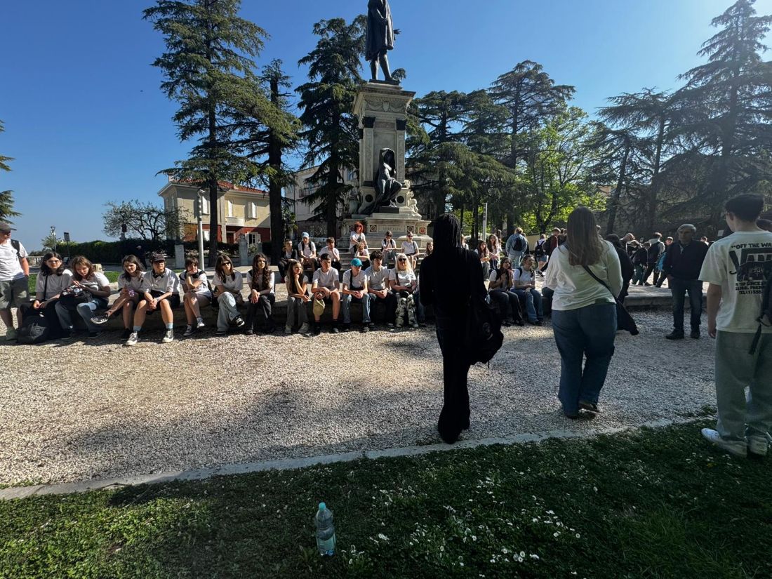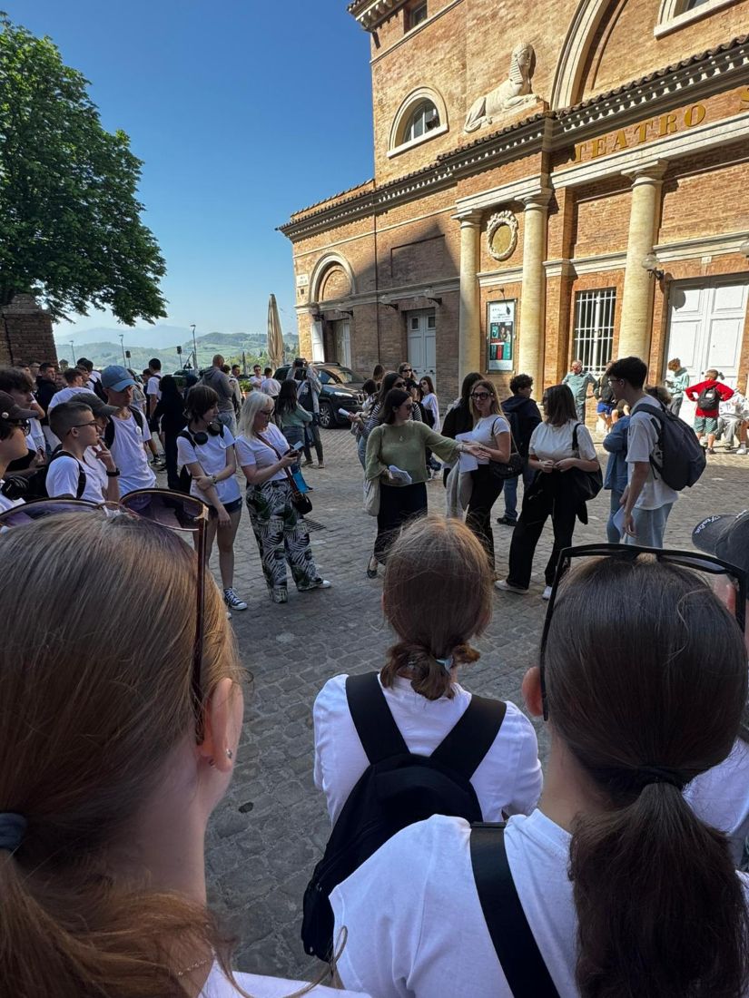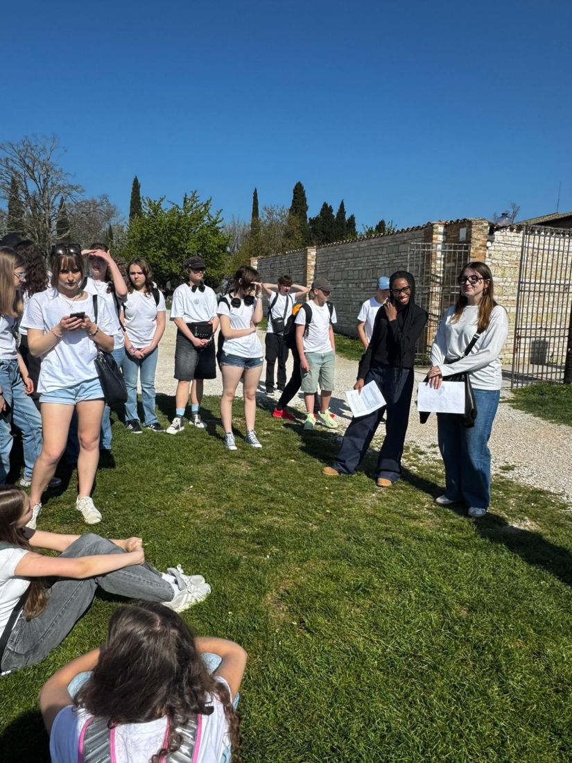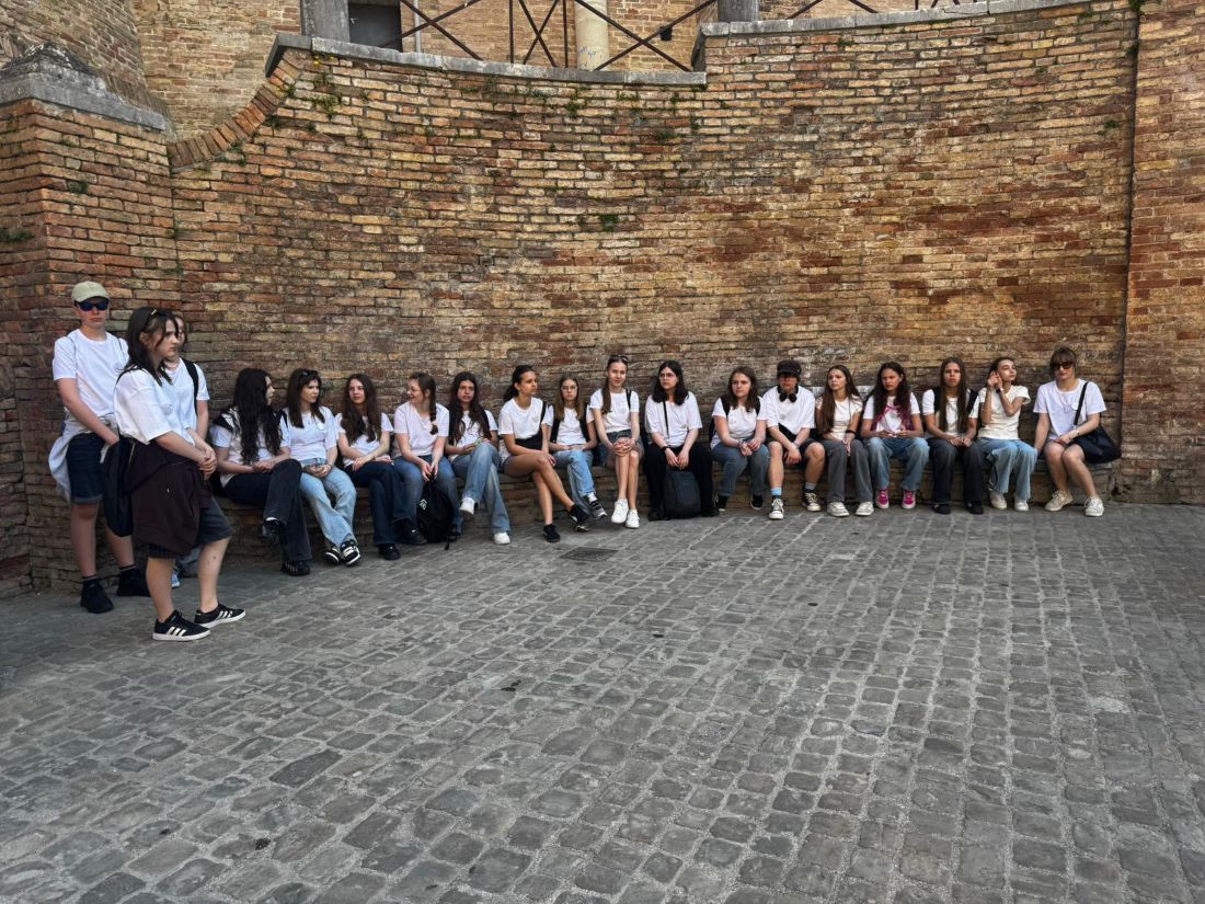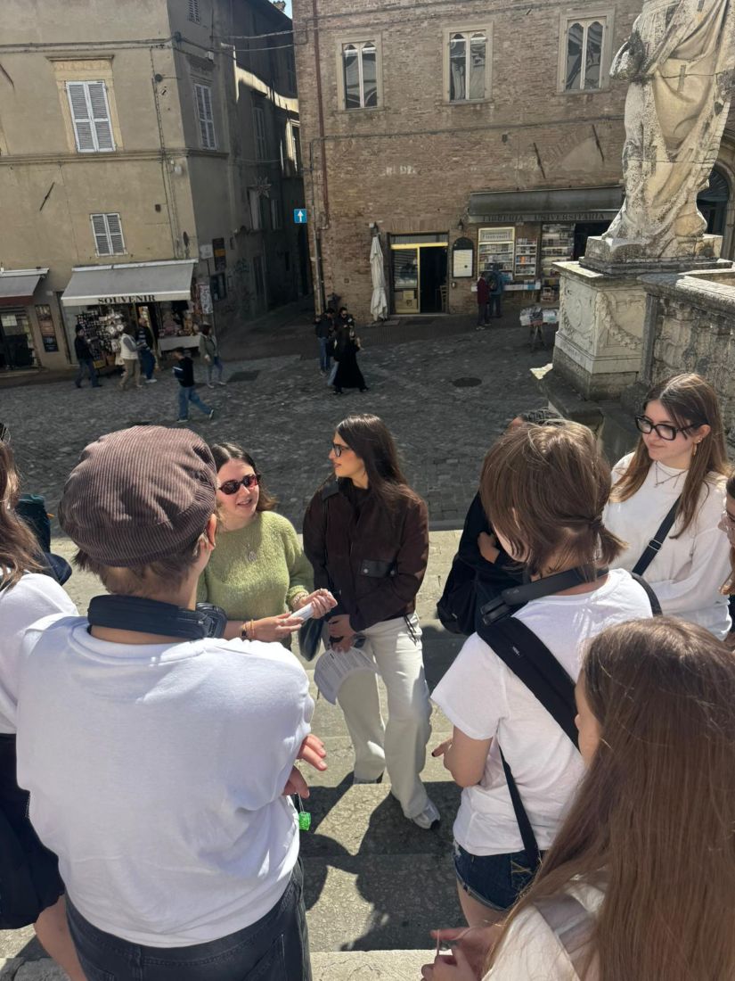 W piątek 17 kwietnia odwiedziliśmy urocze miasteczko Urbino we włoskim regionie Marche. Tam spotkaliśmy się z uczniami 👨🏼‍🎓🧑🏼‍🎓 Liceum o profilu turystycznym oraz ich nauczycielka 👩‍🏫 włoska młodzież opowiedziała nam o swojej szkole 🏫📓📝 mieliśmy też szansę zadać kilka pytań w języku angielskim aby dowiedzieć się jakie egzaminy zdają nasi włoscy przyjaciele, jakich uczą się przedmiotów i jak wygląda ich typowy dzień w szkole👨‍🏫🏫 następnie licealiści oprowadzili nas po Urbino i opowiedzieli o jego najważniejszych zabytkach ⛪️🏰 punktem końcowym naszej wizyty było wyszukiwanie ciekawostek na temat Urbino z wykorzystaniem narzędzi internetowych 🛜🤳📱 ten dzień dał na okazję do: