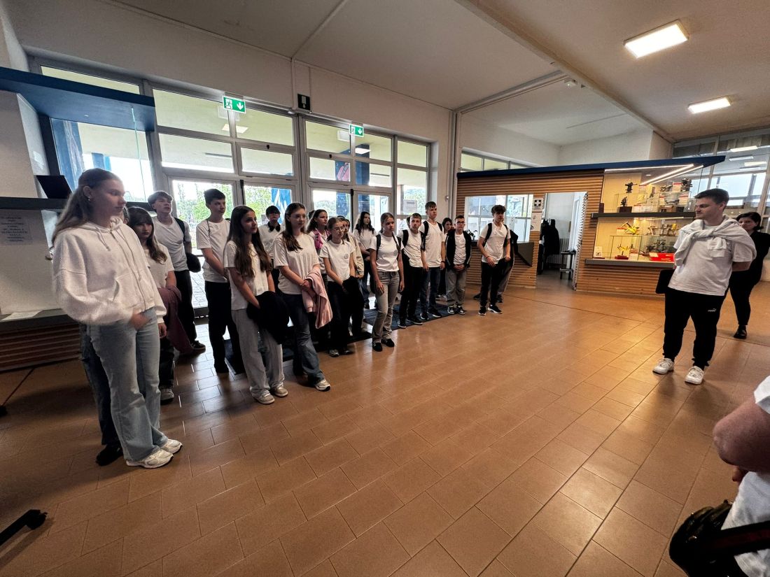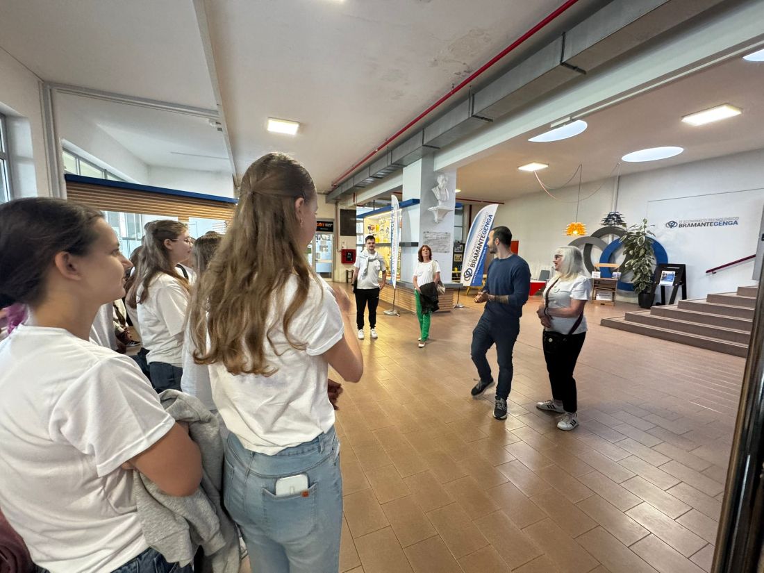 We wtorek 21 kwietnia nasza grupa 👩🏼‍🎓👩🏼‍🎓 wraz z opiekunami 👩‍🏫👩‍🏫 udała się do Istituto Tecnico Economico Tecnologico Bramante Genga w pobliskim mieście Pesaro🙂 gdzie przywitał nas przesympatyczny student Vincenzo😁 tam uczestniczyliśmy w dwóch lekcjach: