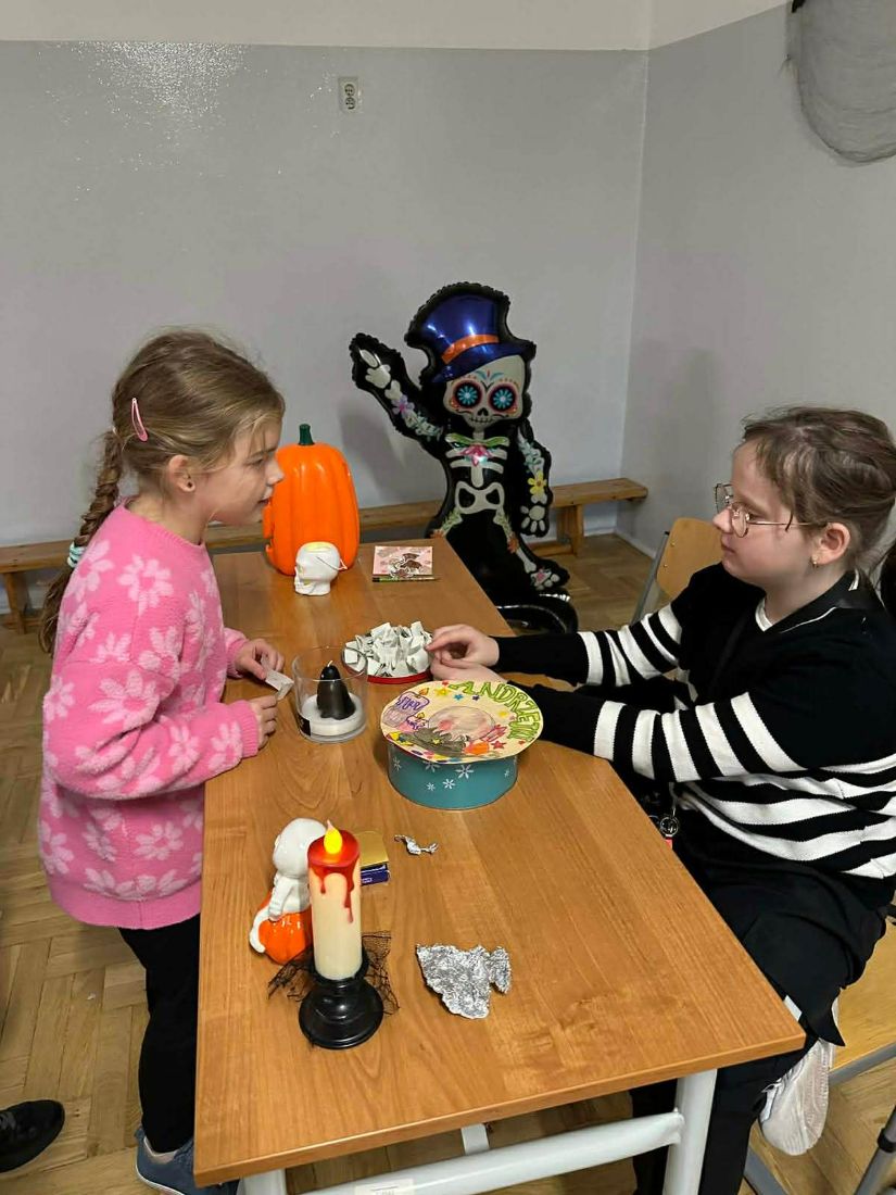26 listopada klasa 5a w ramach działalności Samorządu Uczniowskiego przygotowała wróżby andrzejkowe 🎱🥠🃏 dla naszych najmłodszych uczniów klas 1-3 oraz oddziałów zerówek 👩‍🎓🧑‍🎓👨‍🎓 dzieci dowiedziały się kim zostaną w przyszłości, co spotka ich następnego dnia, jak ścieżkę wybiorą w dorosłym życiu lub komu oddadzą swoje ♥️ 😊 zwieńczeniem zabawy były ciastka z wróżbą 🥠 i medale andrzejkowe 🥈 😀