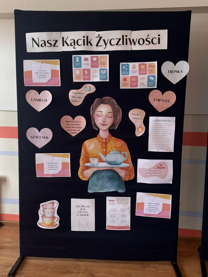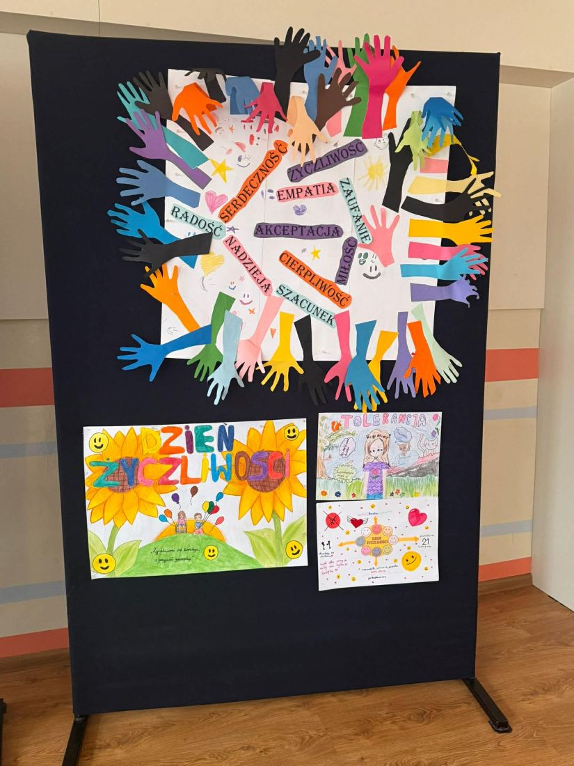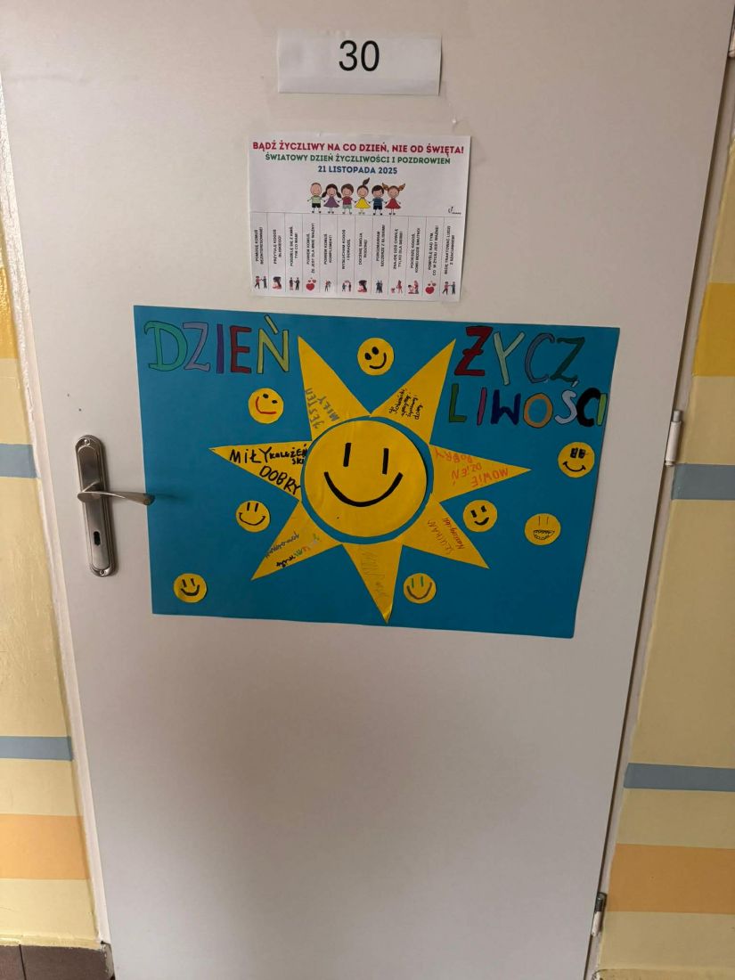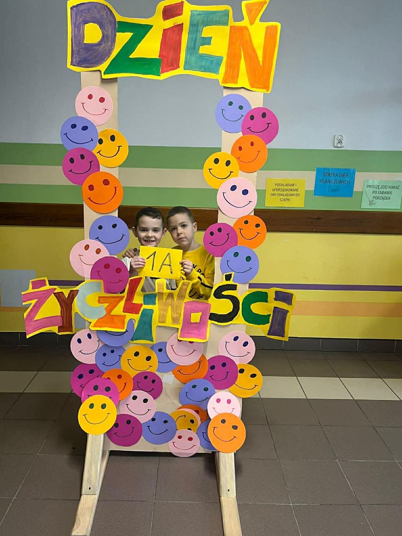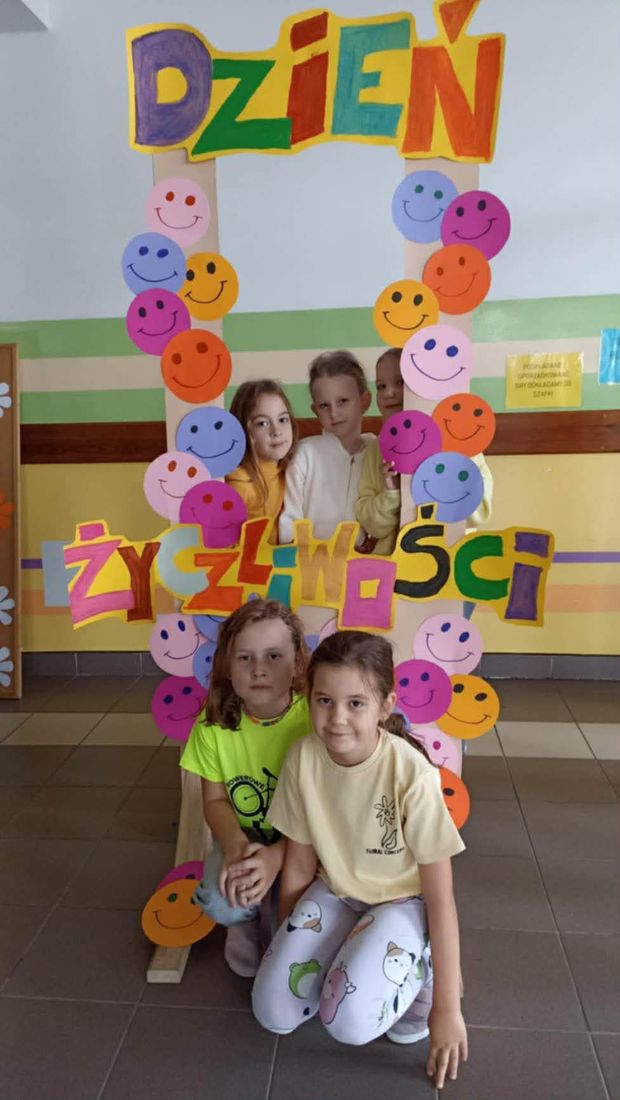 21 listopada obchodziliśmy w naszej szkole Dzień Życzliwości i Pozdrowień 😁 tego dnia wszyscy ubrali się na żółto 🟡🌼 szkołę przyozdobiły plakaty o życzliwości i tolerancji przygotowane przez uczniów 🤝🫂 każdy mógł „poczęstować się” miłym słowem lub zrobić sobie zdjęcie w fotobudce 📷📸 a na długiej przerwie rozbrzmiała wesoła 🎤 🎶 do której tańczyli chłopcy i dziewczęta 💃🕺