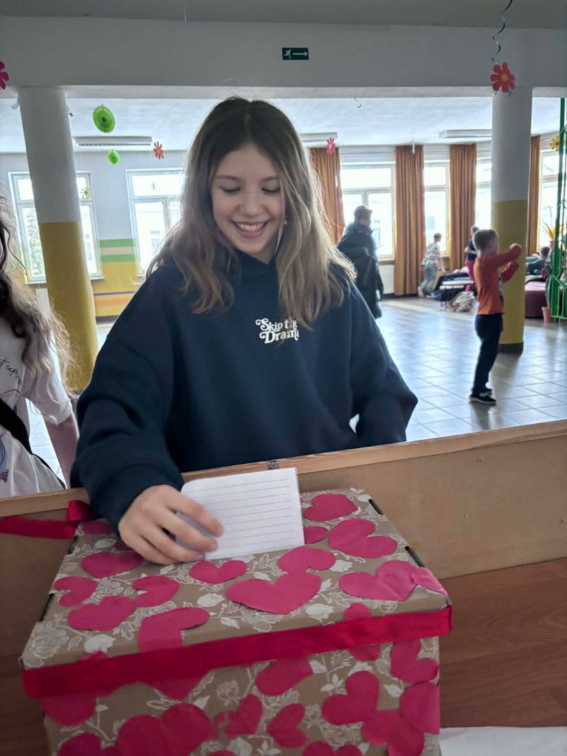 13 lutego z okazji Walentynek ♥️ w naszej szkole 🏫 odbyła się poczta walentynkowa 📬💌 przez dwa dni nasi uczniowie 👨🏼🎓👩🏼🎓 mogli „wysłać” swojej cichej sympatii czy nawet najlepszemu przyjacielowi list 📩 lub kartkę 💌. Frekwencja przeszła nasze najśmielsze oczekiwania 😊 ponadto każdy mógł „strzelić sobie sweet focie” 😁 w walentynkowej ramce ♥️😍 Walentynki to ogólnoświatowe święto miłości ale pamiętajmy aby obchodzić je codziennie a nie tylko tego jednego dnia lutego🥰😉