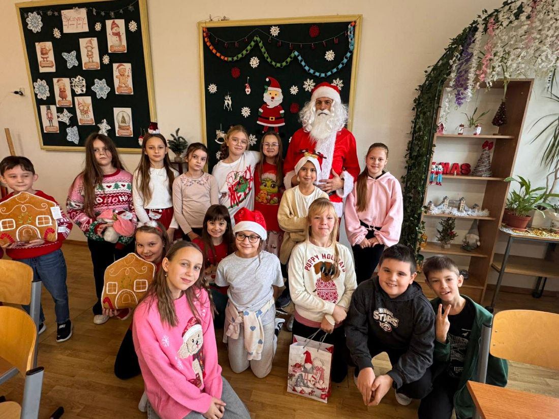5 grudnia do naszej szkoły zawitał Mikołaj 🎅🏻☺️ odwiedził każdą klasę i zapozował z dziećmi do selfie🤳📸 radości i uśmiechom było co niemiara 🙂 pojawiły się nawet pytania czy dzieci były grzeczne, kto dostanie rózgę a kto wymarzony 🎁