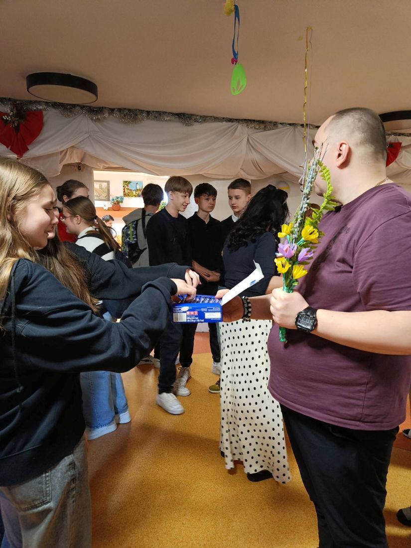 Młodzież ze szkolnego koła wolontariatu, pod opieką pani Dyrektor oraz pani Wicedyrektor, odwiedziła pensjonariuszy Domu Pomocy Społecznej w Kozuli. Celem wizyty było okazanie wsparcia, życzliwości oraz wprowadzenie świątecznej atmosfery wśród mieszkańców placówki.